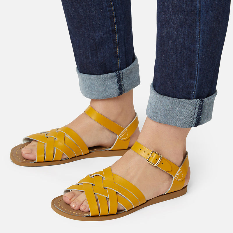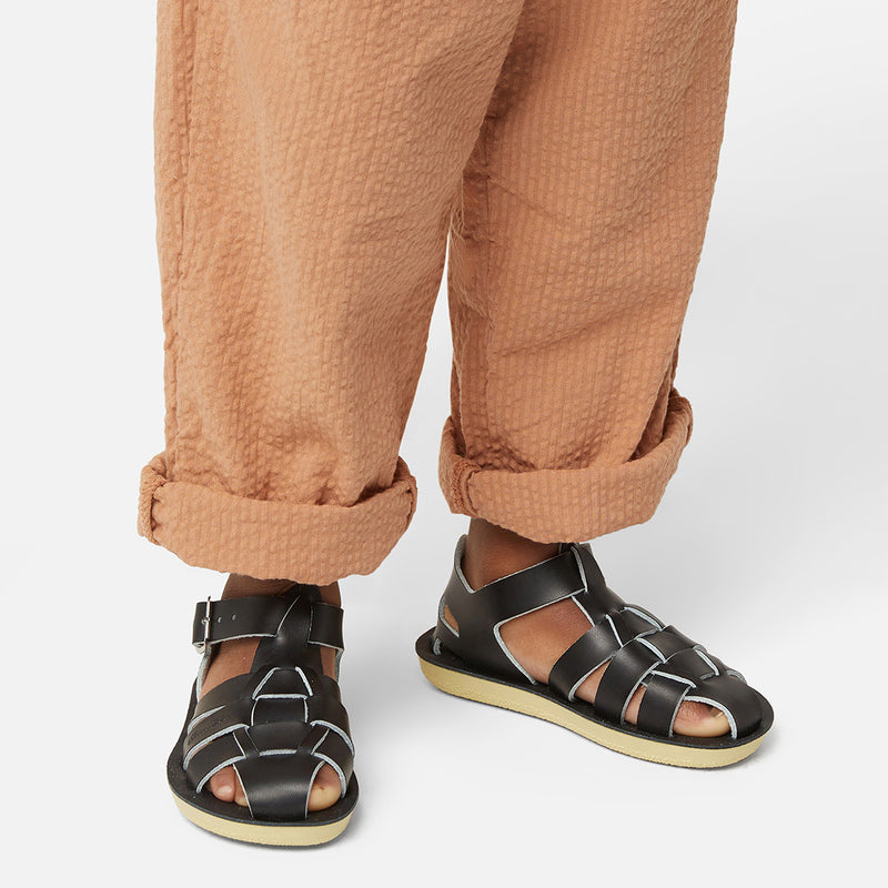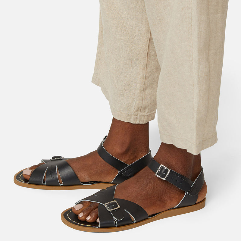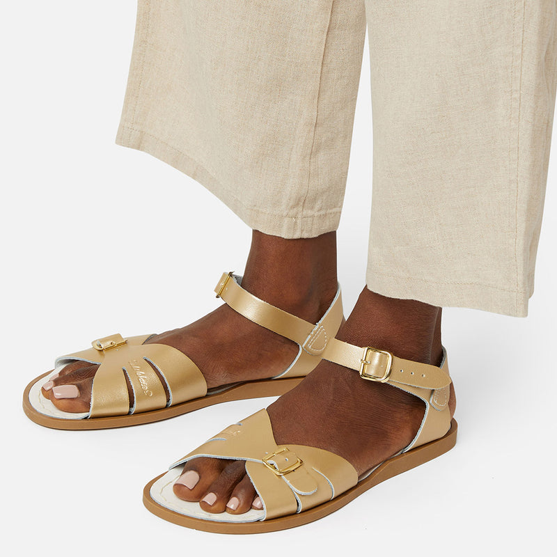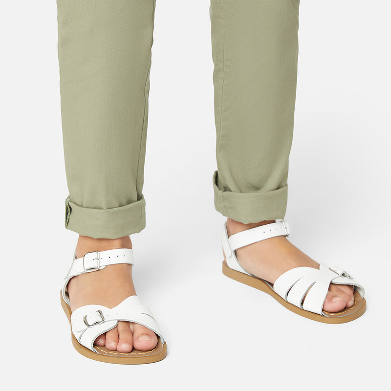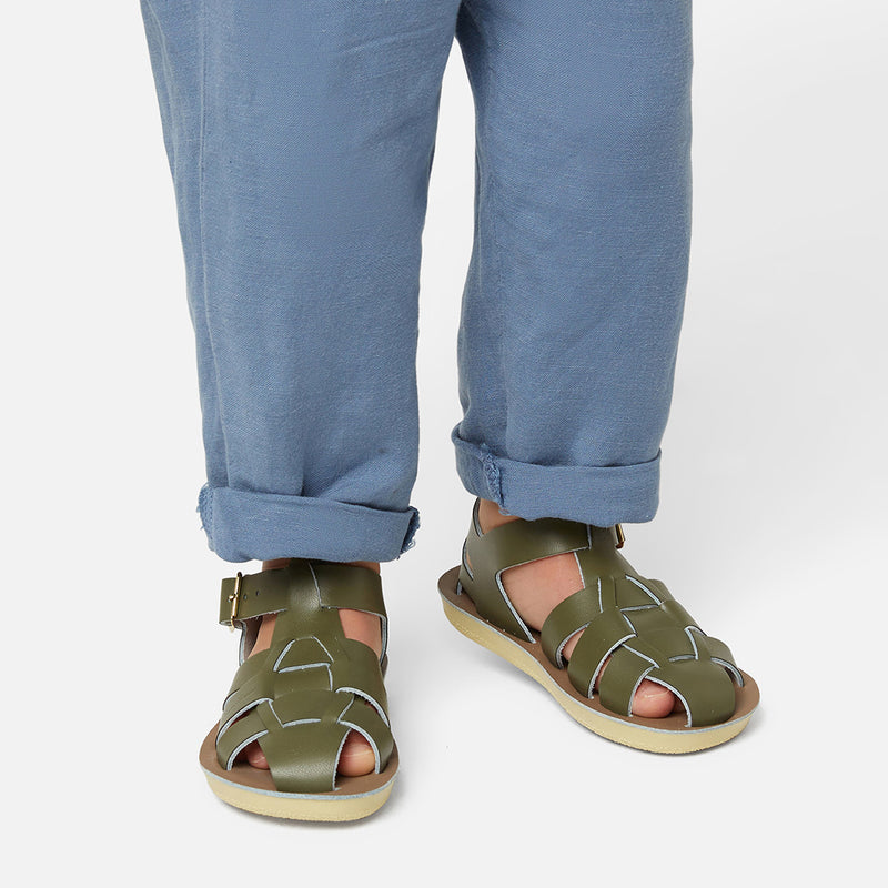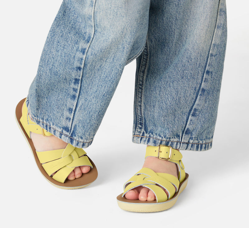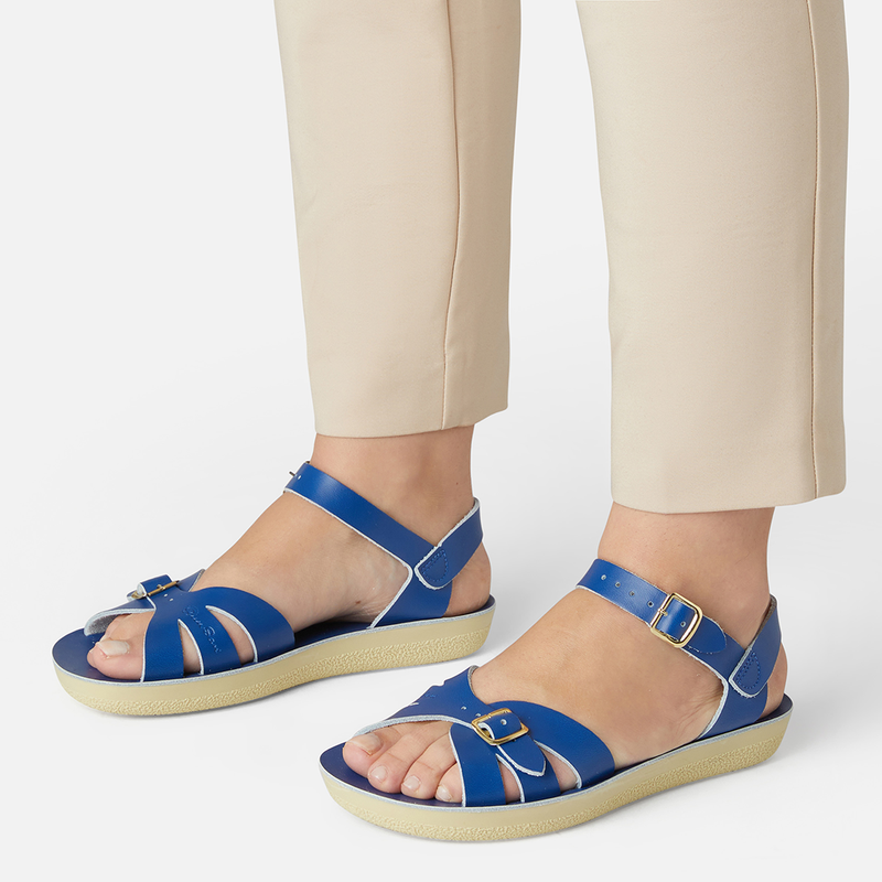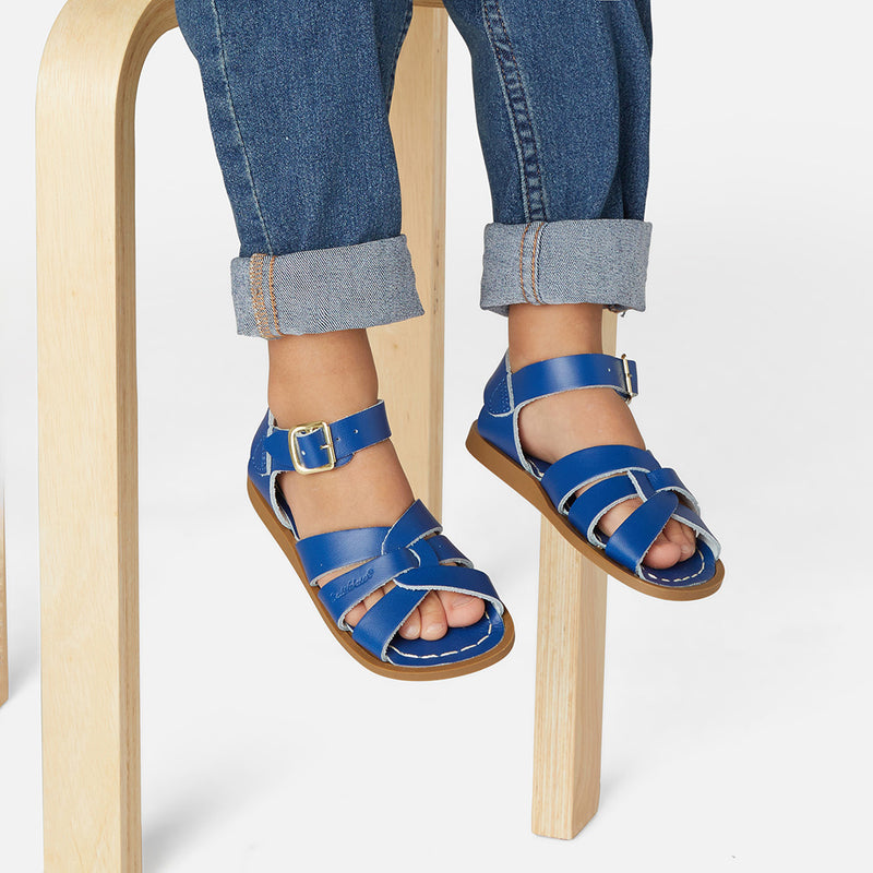 The Tan Salt-Water sandal was the first ever Salt-Water to come out of the Hoy workshop back in 1944. 80 years later and this iconic sandal design lives on. It is a simple, versatile classic and looks lovely on all skin tones. The Tan Original Salt-Water Sandal has our signature hand stitched sole and water resistant plaited leather upper. All Salt-Waters come with rust proof buckles, can be worn in water and be hand-washed with a gentle detergent. Perfect tan coloured sandals - did you know? these tan strappy sandals, they go from children's all the way through to adult sizes so are perfect for the whole family!