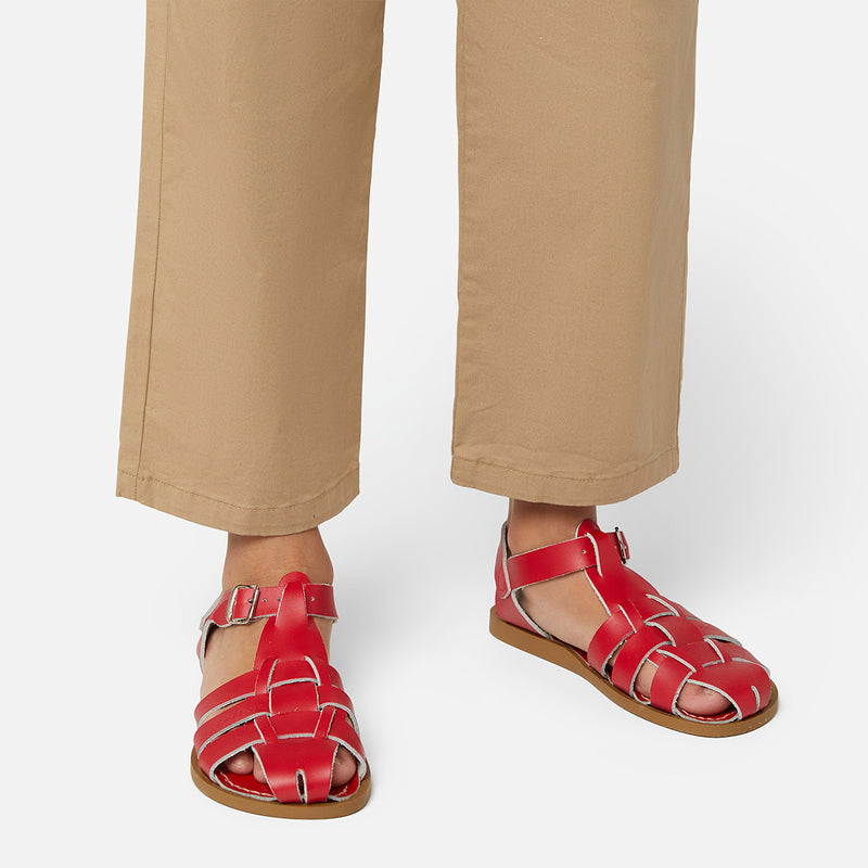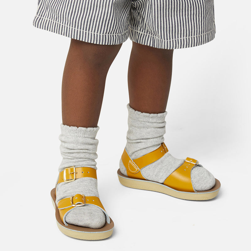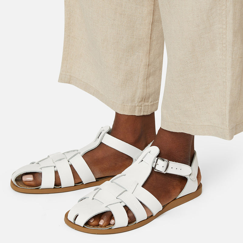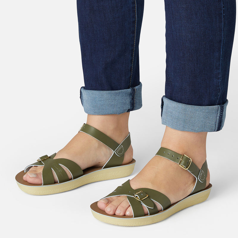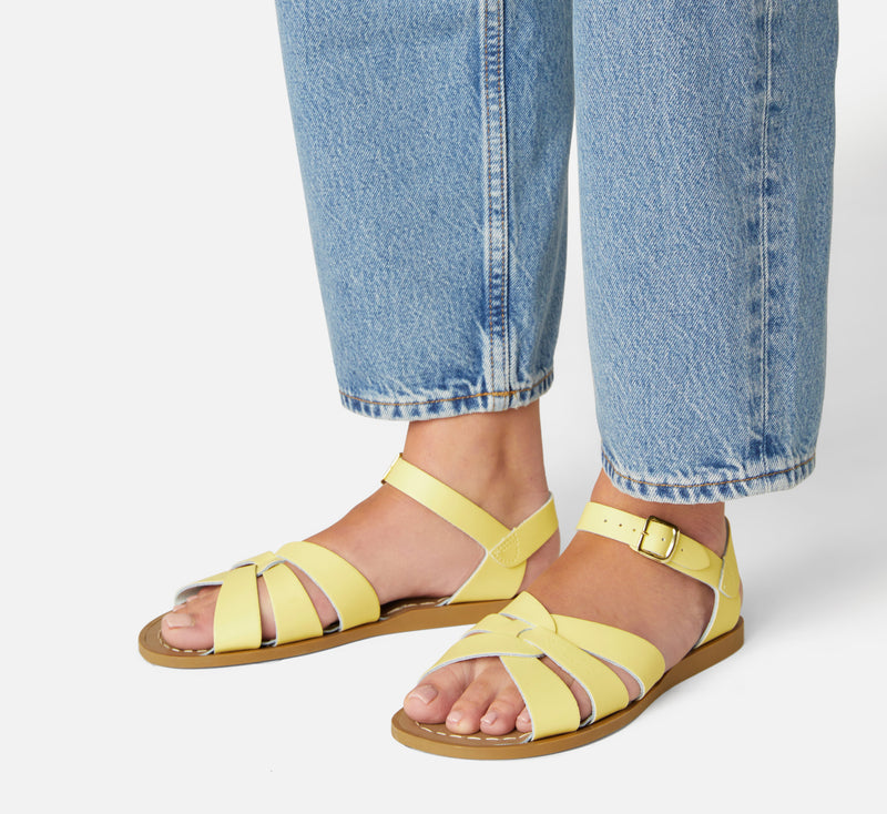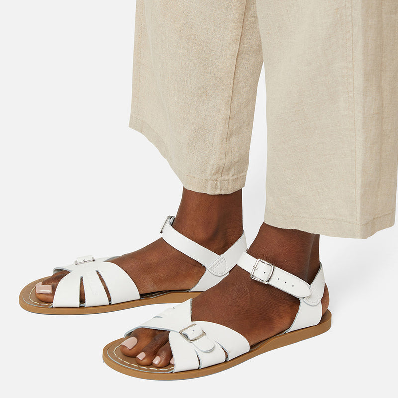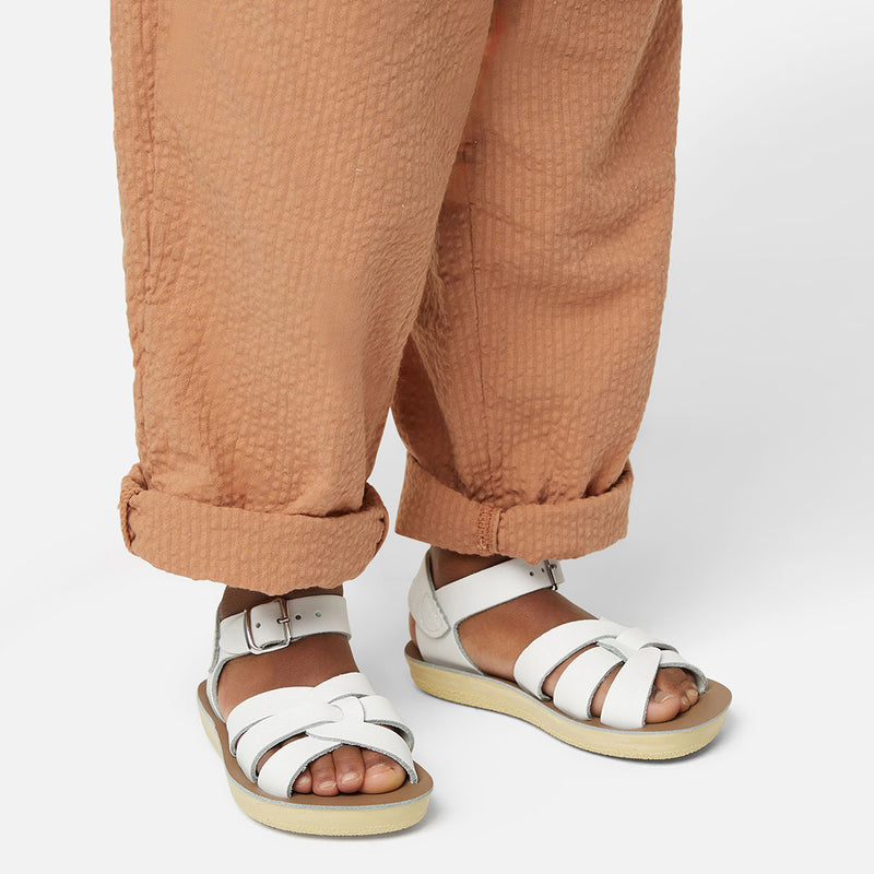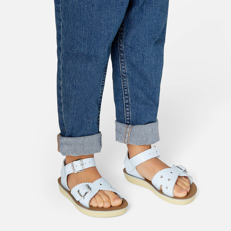 The Tan Salt-Water sandal was the first ever Salt-Water to come out of the Hoy workshop back in 1944. 80 years later and this iconic sandal design lives on. It is a simple, versatile classic and looks lovely on all skin tones. The Tan Original Salt-Water Sandal has our signature hand stitched sole and water resistant plaited leather upper. All Salt-Waters come with rust proof buckles, can be worn in water and be hand-washed with a gentle detergent. Perfect tan coloured sandals - did you know? these tan strappy sandals, they go from children's all the way through to adult sizes so are perfect for the whole family!